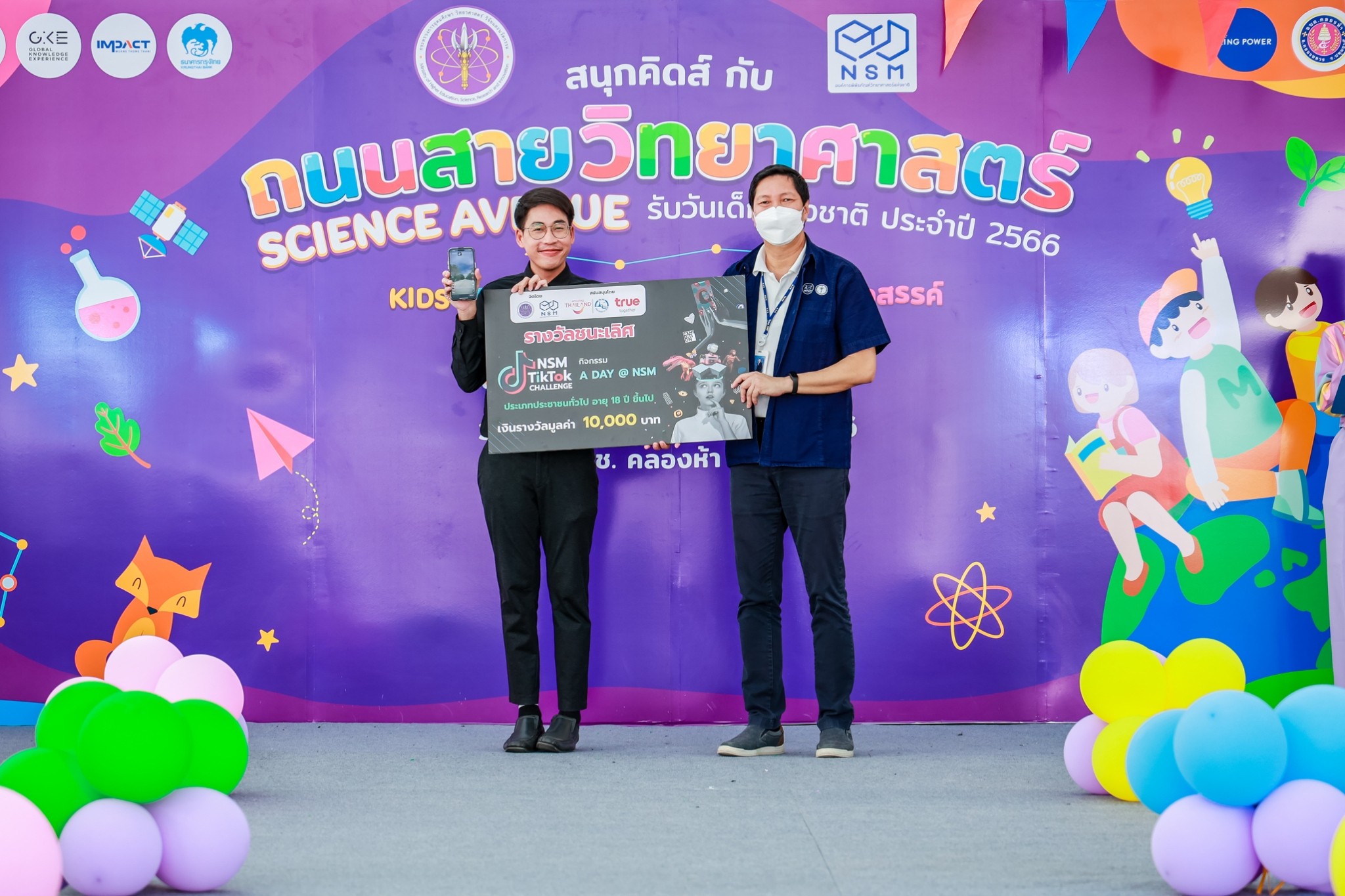 ปทุมธานี – 14 มกราคม 2566 - องค์การพิพิธภัณฑ์วิทยาศาสตร์แห่งชาติ (อพวช.) ร่วมกับ การท่องเที่ยวแห่งประเทศไทย สำนักงานกรุงเทพมหานคร และบริษัท ทรู คอร์ปอเรชั่น จำกัด (มหาชน) จัดกิจกรรมประกวดคลิปวิดีโอ “NSM TikTok Challenge ชุด A Day @ NSM” ภายใต้แนวความคิด “ดินแดนแห่งการค้นพบความมหัศจรรย์ของวิทยาศาสตร์” ซึ่งมีผู้ส่งผลงานเข้าประกวดกว่า 80 ผลงาน ผลปรากฏว่า เด็กชายปัทวิณ ปัญญารัตนากร คว้ารางวัลชนะเลิศ ในประเภทเด็กและเยาวชน นักเรียน – นักศึกษา อายุไม่เกิน 18 ปี และนายวุฒิชัย พึ่งแม้น คว้ารางวัลชนะเลิศ ในประเภทประชาชนทั่วไป อายุ 18 ปี ขึ้นไป โดยมีพิธีมอบรางวัล ณ อพวช. ต.คลองห้า อ.คลองหลวง จ.ปทุมธานี