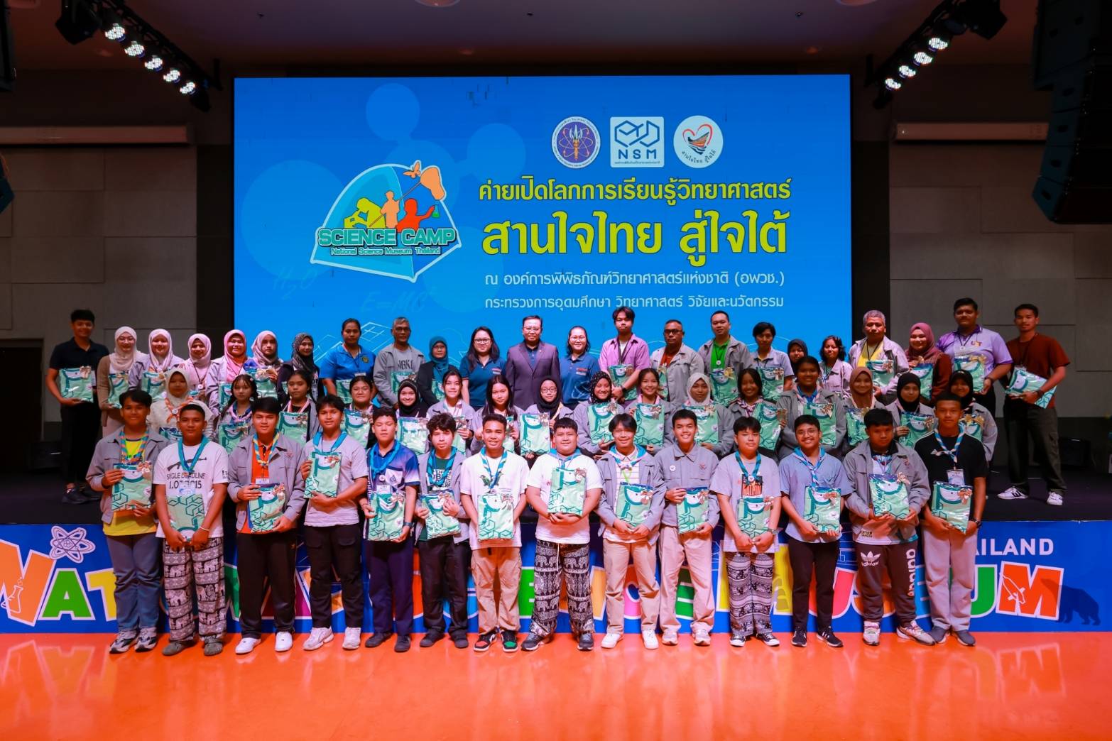24 ตุลาคม 2568 / ดร.กรรณิการ์ เฉิน รองผู้อำนวยการองค์การพิพิธภัณฑ์วิทยาศาตร์แห่งชาติ (อพวช.) หรือ NSM เป็นประธานเปิดกิจกรรมค่าย “เปิดโลกการเรียนรู้วิทยาศาสตร์ สานใจไทยสู่ใจใต้ รุ่นที่ 45” เพื่อสร้างแรงบันดาลใจให้เยาวชนผ่านการเรียนรู้วิทยาศาสตร์ในรูปแบบที่สนุกสนานและมีส่วนร่วมภายในพื้นที่พิพิธภัณฑ์ของ อพวช. ซึ่งจัดขึ้นภายใต้โครงการสานใจไทย สู่ใจใต้ฯ โดยมีเยาวชนจากจังหวัดชายแดนภาคใต้ ได้แก่ ปัตตานี ยะลา นราธิวาส สตูล และสงขลา จำนวน 320 คน เข้าร่วมกิจกรรม ระหว่างวันที่ 24 - 28 ต.ค. 2568 ณ อพวช. ต.คลองห้า อ.คลองหลวง จ.ปทุมธานี