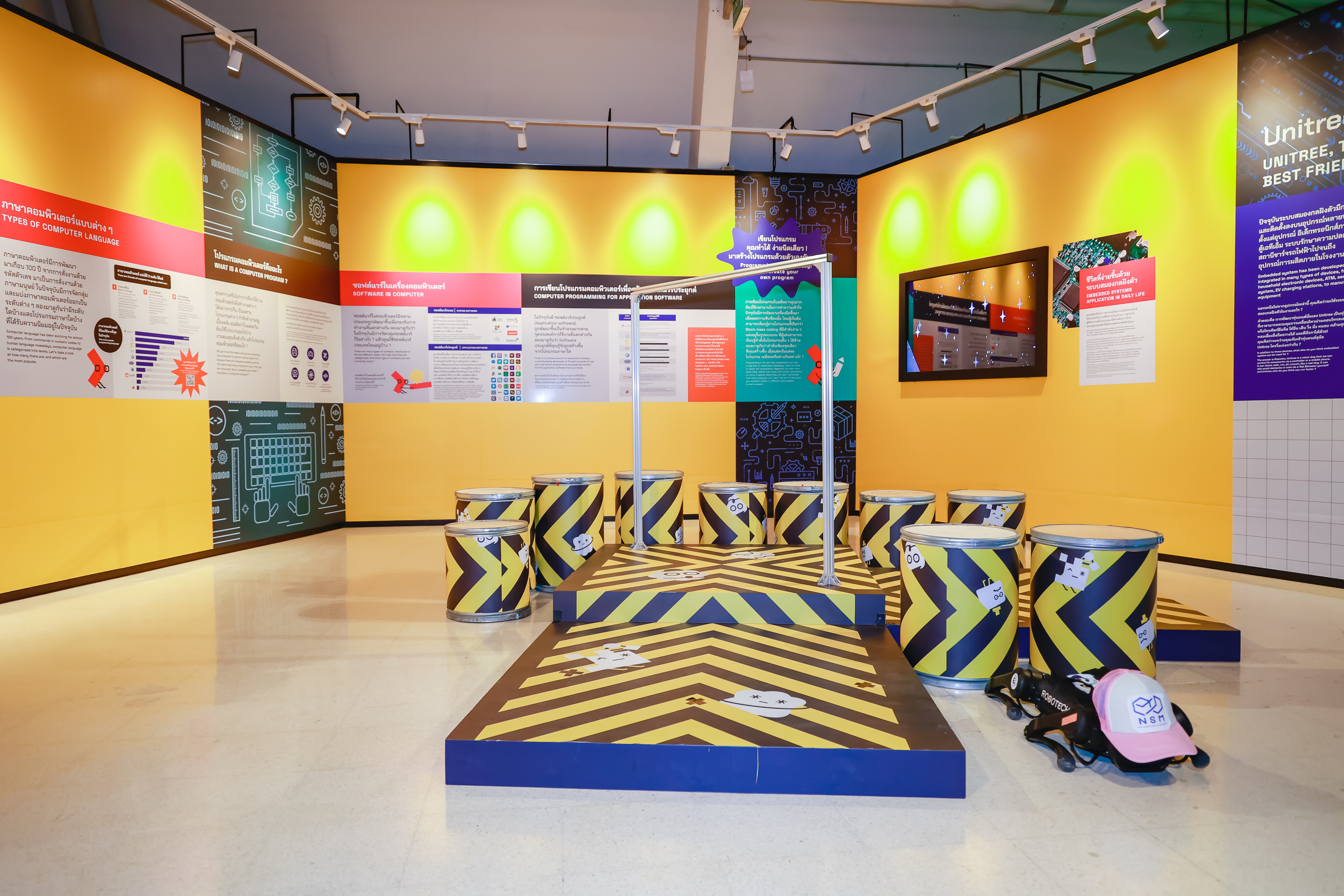 นิทรรศการ “ดิจิทัลเทคโนโลยีเพื่อสังคมที่ยั่งยืน” ผู้เข้าชมจะได้เรียนรู้เรื่องราวในการพัฒนาเทคโนโลยีดิจิทัล ซึ่งจัดแสดงในรูปแบบที่ทันสมัย ออกแบบอย่างสวยงามในแนว Pop Art เน้นการมีส่วนร่วมอย่างสนุกสนาน ผ่านชิ้นงานมัลติมีเดีย (Multimedia) และสื่อปฏิสัมพันธ์ (interactive stations) ผสมผสานด้วยชิ้นงานจัดแสดงที่เน้นของจริงและเทคโนโลยีล้ำสมัย ตื่นตาตื่นใจไปกับ “คอมพิวเตอร์เครื่องแรกของประเทศไทย” และพลาดไม่ได้ที่จะชวนคุณไปทำความรู้จักกับ “Unitree” หุ่นยนต์สุนัขตรวจการณ์อัจฉริยะ ซึ่งในนิทรรศการฯ จะแบ่งออกเป็นทั้งหมด 7 โซนด้วยกัน ได้แก่ 1.คอมพิวเตอร์ (Computer) : เรียนรู้พัฒนาการของเครื่องคอมพิวเตอร์และบุคคลสำคัญที่เกี่ยวข้อง 2.ตรรกศาสตร์และอัลกอริทึม (Logic and Algorithm) : เรียนรู้ตรรกศาสตร์และอัลกอริทึมกับการทำงานของคอมพิวเตอร์ 3.การเข้ารหัส (Coding) : มาทำความรู้จัก Coding 4.การเขียนโปรแกรม (Programming) : เรียนรู้การเขียนโปรแกรมเพื่อสร้างระบบสมองกล 5.คอมพิวเตอร์เชิงควอนตัม (Quantum Computer) : มาทำความเข้าใจความหมายของคอมพิวเตอร์ในเชิงควอนตัม 6.ทักษะความเข้าใจเทคโนโลยีดิจิทัล (Digital Literacy) : รู้จักประโยชน์ของทักษะความเข้าใจเทคโนโลยีดิจิทัลและแนวโน้มของสังคมดิจิทัลในอนาคต และ 7.ฮัลโหล, เวิลด์ (Hello, World) : มารู้จักประวัติภาษาคอมพิวเตอร์อย่าง “Hello World” โดยนิทรรศการฯ ชุดนี้จะช่วยให้ผู้เข้าชมทุกคนได้ค้นพบความมหัศจรรย์ของเทคโนโลยีดิจิทัลกันอย่างสนุกสนานอย่างแน่นอน”